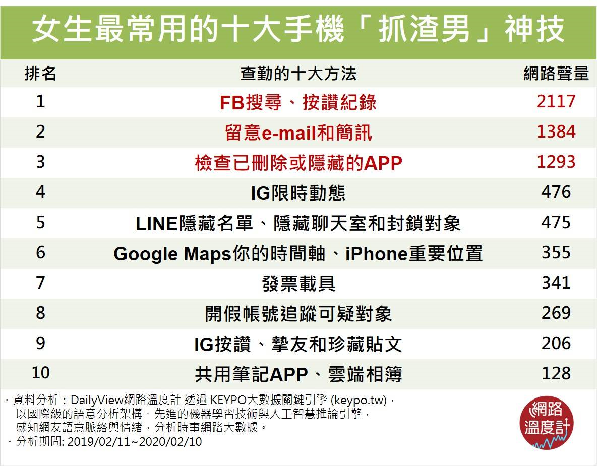 以下是網路溫度計整理 【用手機查勤、抓劈腿十大方法】
